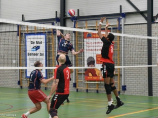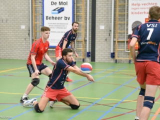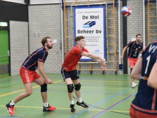 Na de ontsnapping in de vierde set tegen Kratos vorige week was de sfeer in de Goudse ploeg vanaf het begin uitstekend. Ondanks afwezigheid van Reinier Batterink werd de bank goed gevuld, met de herstelde coach Brouwer (waardoor succescoach Frank gedegradeerd werd tot assistent) en invaller Timon de Fouw, die zijn goede spel in heren 3 mocht proberen door te trekken naar een tweede wedstrijd. Terug in de basisopstelling waren Chris Möhlmann, Stefan Lipman en ook Koen Benne (die vorige week nog zo doorslaggevend was). VollinGo begon echter twijfelend aan set 1, met een service-pass die nog wat aan precisie miste, maar vooral een slecht gepositioneerd blok. De sterke aanval van Kalinko kon daardoor eenvoudig via de Goudse blokkering scoren. De blokkering van Kalinko daarentegen liet zich niet verassen, waardoor buitenaanvallers Noah Aerts en Matthias de Gier moeite hadden om de ruimte te vinden. Een 19-25 eindstand verdoezelde het ondervonden krachtverschil tussen de twee ploegen een beetje.