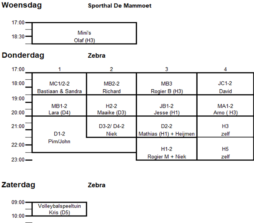 Dit is het trainingsschema voor seizoen 2025-2026.