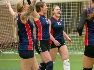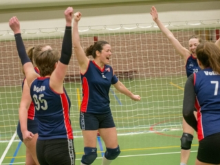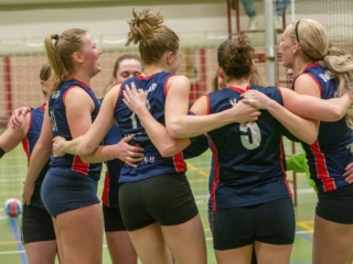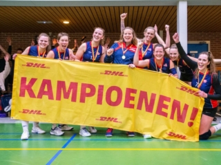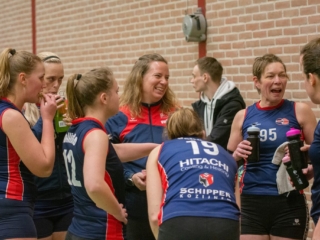 Daarom werd vol goede moed, met een kleine herstart, begonnen aan (hopelijk) de laatste set. De laatste set van de wedstrijd én de laatste benodigde set om nu dus echt het kampioenschap in de wacht te slepen. Wederom een onrustige start maar toch trok geen van beide ploegen snel aan het langste eind, met veel lange rally’s tot gevolg. De gehele set ging daardoor vrijwel gelijk op. Bij de “big points” aangekomen, leek het vrij snel te kunnen worden beslist: VollinGo stond op matchpoint. Toch duurde het nog een ruime 10 minuten, met klamme handjes en veel samengeknepen billen op de tribune later, tot het laatste punt door Maaike werd gesmasht en een winst met 28-30 kon worden genoteerd.