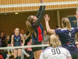 Het werd dan ook ook een échte derby. Na een stroef begin wisten de meiden van VollinGo de draad op te pakken en konden ze de eerste set in hun zak steken: 18-25.